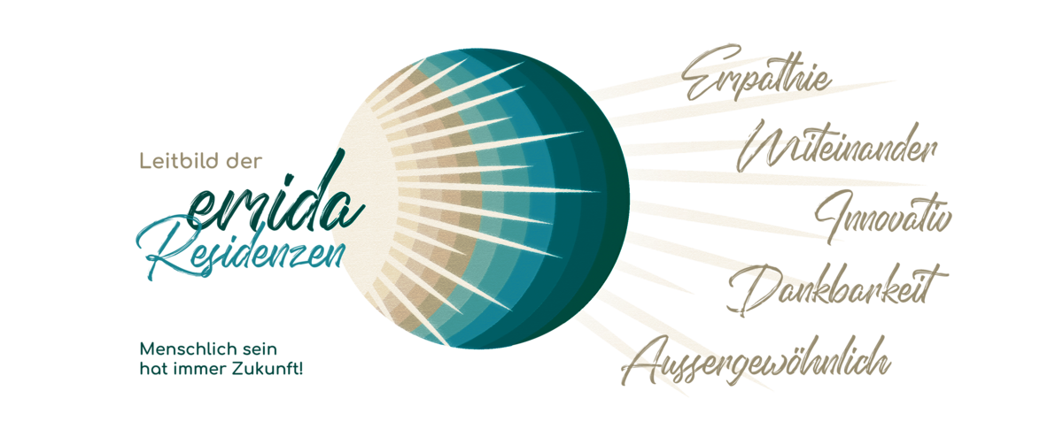 emida ist ein junges innovatives Unternehmen. Fest gefahrene Konzepte sind für uns ein Fremdwort. Gemeinsam mit unseren Mitarbeitern leben wir ein freundschaftliches, unterstützendes Führungsverhalten. Moderne Systeme sorgen dafür, den Pflegealltag so einfach wie möglich zu gestalten. Wichtigstes Ziel dabei ist es, allen Mitarbeitern frühzeitig festgelegte Dienstpläne zu bieten, auf die sie sich verlassen können. Unsere Mitarbeiter sind unser höchstes Gut. Die Wertschätzung ihres Engagements ist für uns selbstverständlich. Nicht die Unternehmensleitung gibt vor, wie der Pflegealltag gestaltet wird. Unternehmensleitung und Mitarbeiter erarbeiten gemeinsam, was an Hand der Individualität unserer Bewohner erforderlich ist, um eine überdurchschnittliche Bewohnerzufriedenheit gewährleisten zu können.